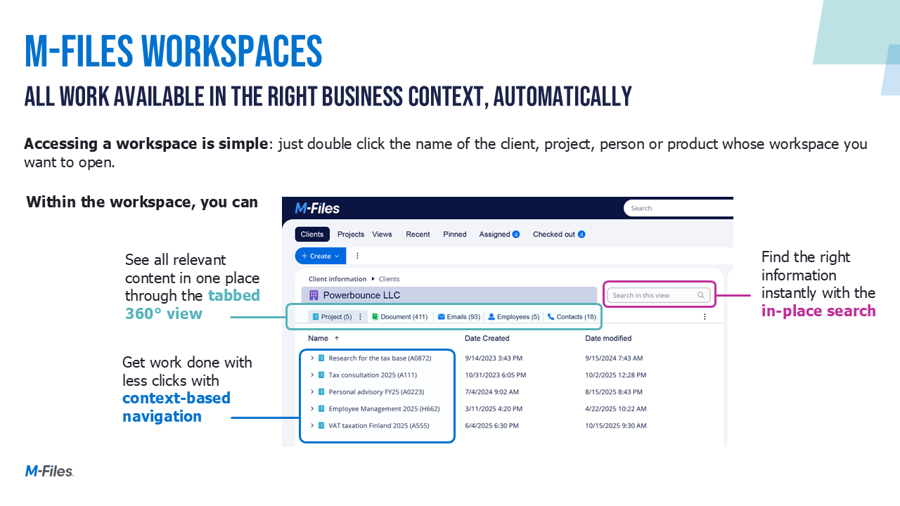 Join this webinar for an in-depth look at M-Files Workspaces and experience the product demo that brings the features to life.