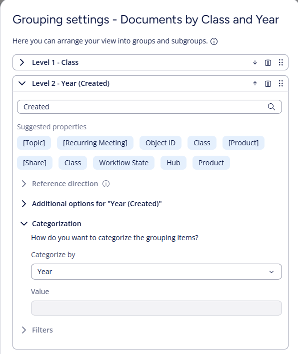- Grouping level configurations. You are now able to edit grouping levels in views to better organize views.