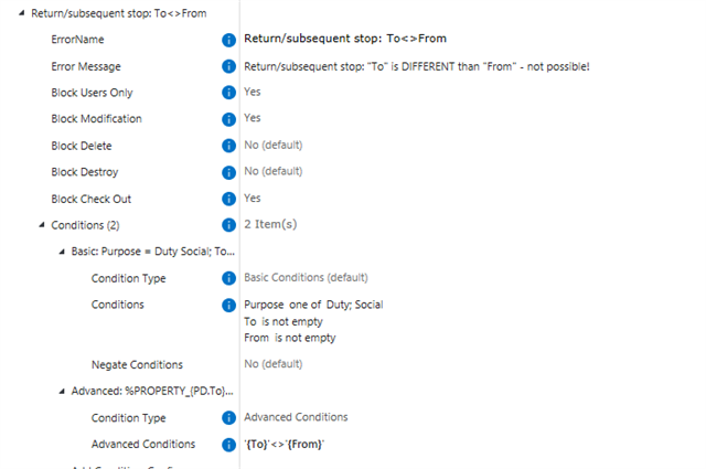 Basically if the values in the "To" and "From" properties are NOT the same, then this should trigger the error.