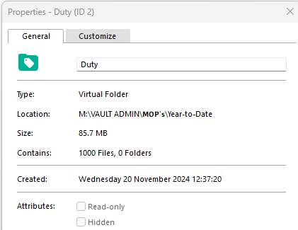 I realised that the system is only counting the first page of objects, so as an example in the first folder 'Duty' it shows 1,000 documents: