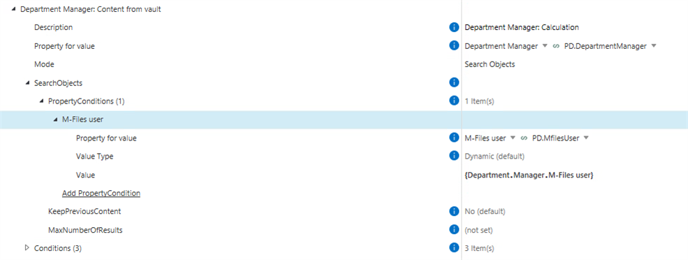 I tried to use Property Calculator Mode Calculate Expression and Search Objects but i'm getting the following error when property Department Manager is Choose From List Single Select: