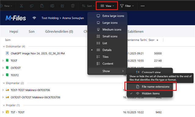 the same docs in the traditional desktop appear without the file extension