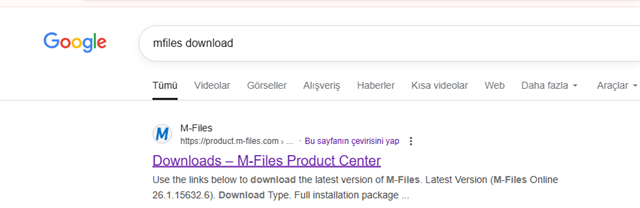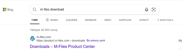 As shown in the image, clicking the link yields this data. However, please note that Bing and Yandex search engines lead to M-Files' own download site.