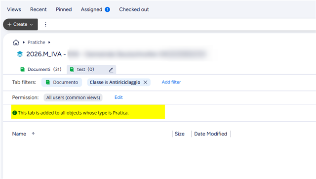 The text highlighted in yellow simply indicates that the same tab will be available in all workspaces for this object type (Pratica).