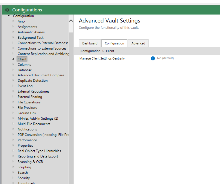 I'm trying to increase the the default items per page on the Web Access (50 to 100) and I found that it needs to be done under Avanced Configurations at the Vault level, but after reviewing these configurations I'm seeing these seetings as empty: