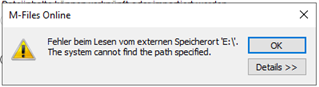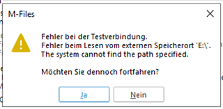 While I can access the particular network share through Windows Explorer without any problems and create, edit and delete whatever files, when mapping and refreshing the connection within M-Files Admin the following error appears: