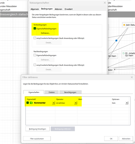 But in Hubshare, this Pre-Condition ist not working properly. The User can change to that Workflow-State without making a comment. (There are alway 'old' comments on that objekt)