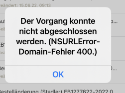 "Process coult not be finished (NSURL Error Domain Error 400)"