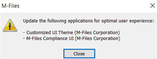 The other part I am not quite sure about: "M-Files Compliance UI". What does it refer to? Is it Compliance Kit version? Due to bug within Advanced Notifications, I can not upgrade to latest M-Files compliance kit and I am currently stuck on 20.10.911.3 version.