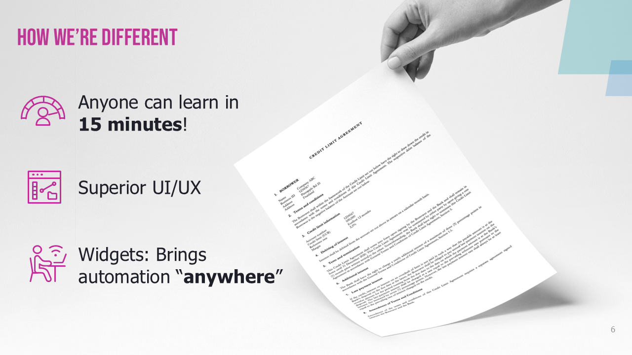 Since the training time needed is minimal and there's no need for expensive consultants, the total cost of automation is significantly lower than with many other solutions. Faster automation allows you to automate all your templates in no time. The result? Maximized ROI.